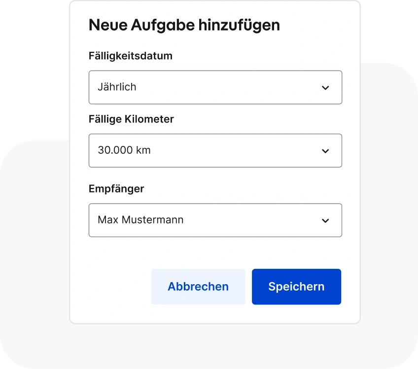 Ja. Sie können eigene wiederverwendbare Aufgabenvorlagen erstellen und exakt an Ihre Prozesse anpassen. Sie definieren die Aufgabendetails, legen Wiederholungsregeln fest und bestimmen, wie die Erinnerungen funktionieren sollen. Diese Vorlagen können Sie einzelnen Fahrzeugen oder per Sammelzuweisung vielen Fahrzeugen gleichzeitig zuordnen und so Ihre Arbeitsabläufe im gesamten Fuhrpark vereinheitlichen.